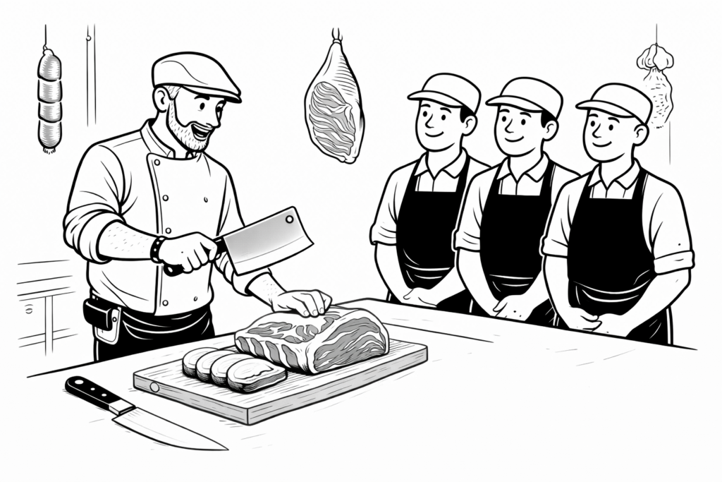 Des formations 100 % adaptées à votre organisation, animées par des experts issus du terrain. Objectif : transmettre un savoir-faire concret, immédiatement applicable en magasin. Boucherie, charcuterie, traiteur, poissonnerie, fruits et légumes, fromagerie.